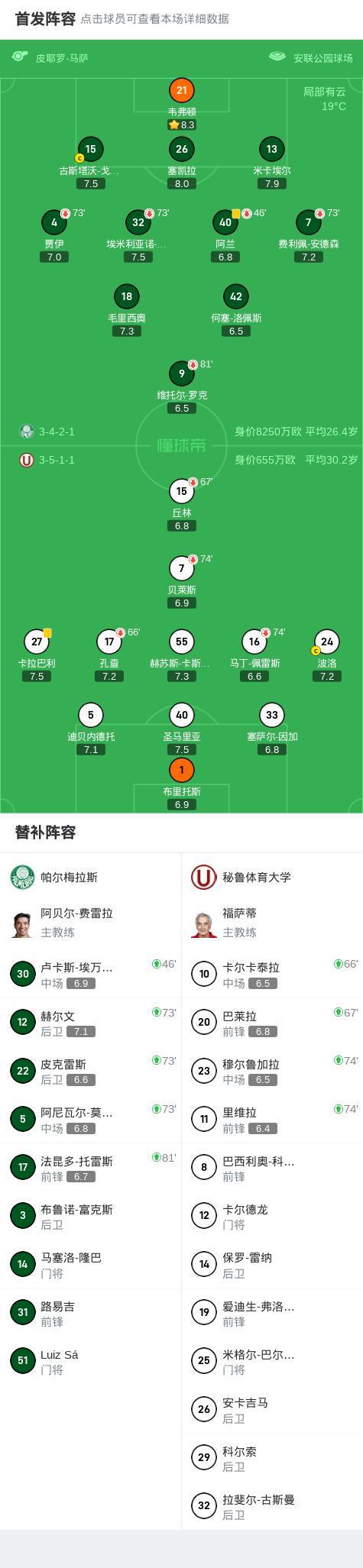 帕尔梅拉斯0-0秘鲁体育大学,势均力敌 频道:西甲 日期:2026-01-10 浏览:98 南美解放者杯1/8决赛次回合,帕尔梅拉斯对阵秘鲁体育大学的比赛在常规时间内以0比0握手言和。凭借此前建立的优势,帕尔梅拉斯以总比分4比0淘汰对手,顺利晋级下一轮赛事。球队阵容 技术统计 下一篇:邯郸足球,来了!——2025邯郸U18青少年足球挑战赛开幕式侧记 相关文章 CBA新赛季分组揭晓,广东队死亡小组大麻烦,辽宁队捡了便宜 马竞欧冠联赛阶段大名单:新援巴埃纳、阿尔马达、汉茨科等入选 邯郸足球,来了!——2025邯郸U18青少年足球挑战赛开幕式侧记 帕尔梅拉斯0-0秘鲁体育大学,势均力敌